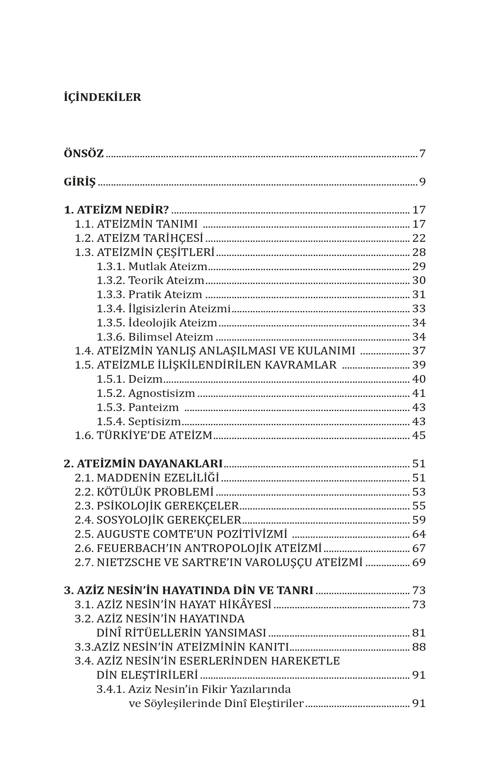 Elinizdeki kitabın temel izleği; Türkiye’de düşünce dünyasına damga vurmuş yazar ve aydınlardan biri olan Aziz Nesin özelinde, ateizmin dayanaklarını incelemektir. Din felsefesi odaklı bir çalışma olması hasebiyle bu araştırmada; Nesin’in fikir dünyası, köşe yazıları ve romanlarından hareketle bir düşünce haritası çıkarılmaya çalışılacak; ateist dünya görüşünün temel argümanları ve dayanakları analiz edilecektir. Bu analiz süreci, doğası gereği edebiyat ile felsefenin disiplinlerarası ortaklığına da dolaylı olarak karşılık gelmektedir.
